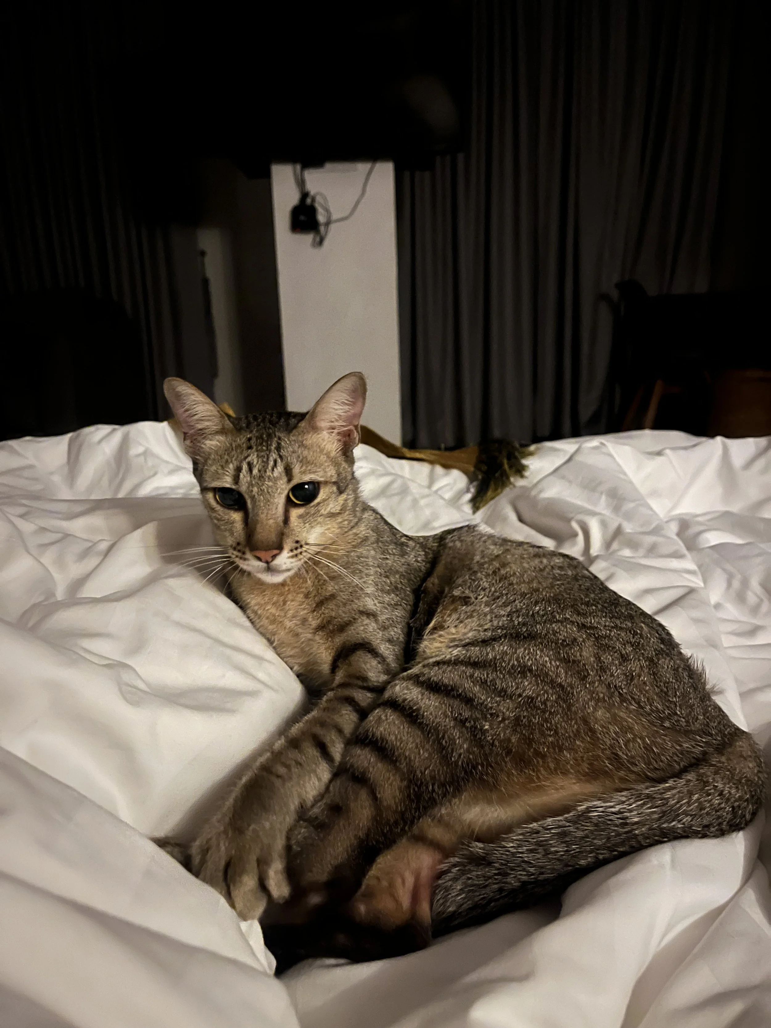 Returning late on my first night in Siem Reap, I found a cat waiting outside my hotel room. She slipped inside as if she belonged there. And, as it turned out, she did: she was the hotel cat. Watching over me.